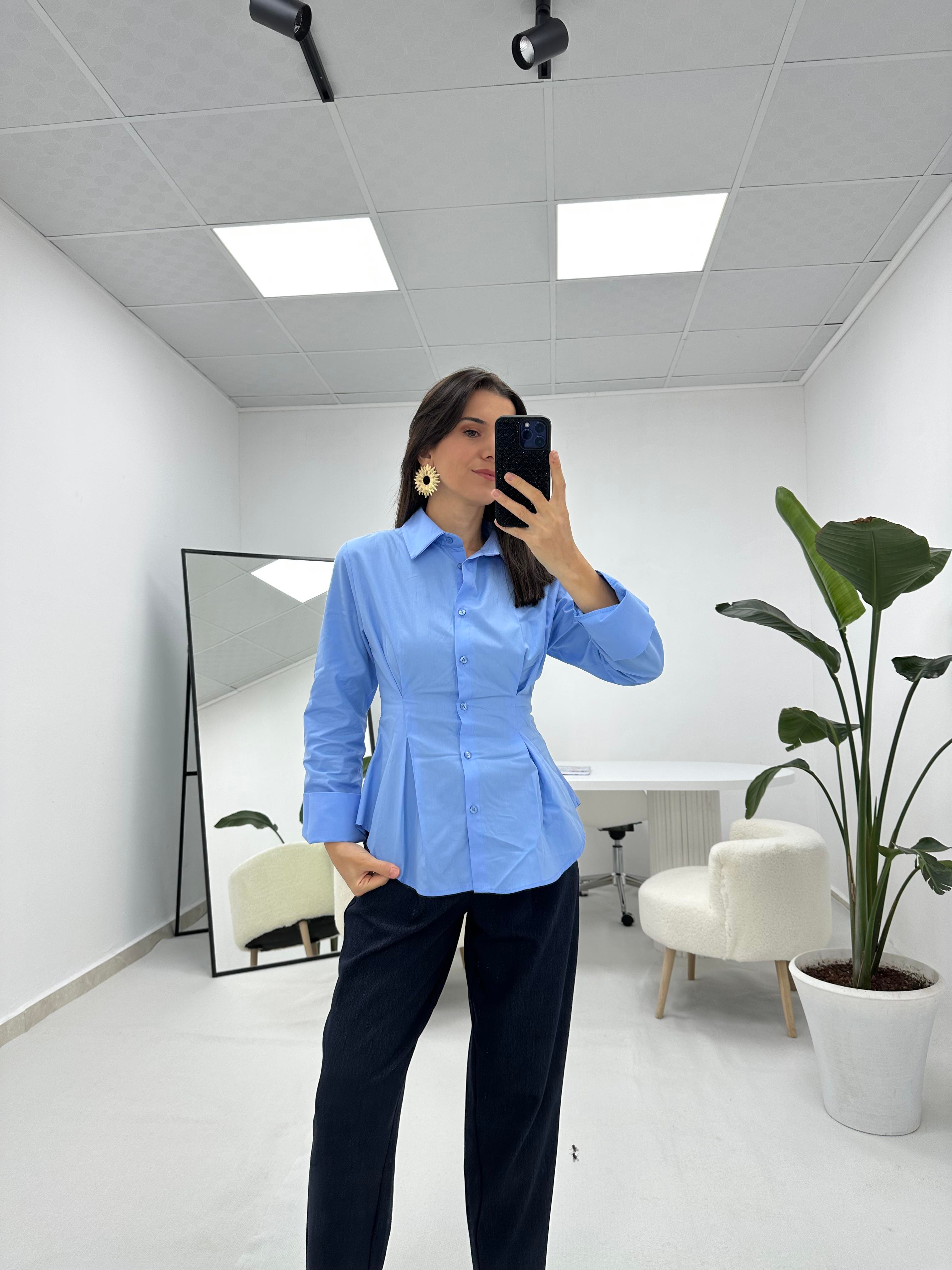 Beli Pensli Mavi Gömlek