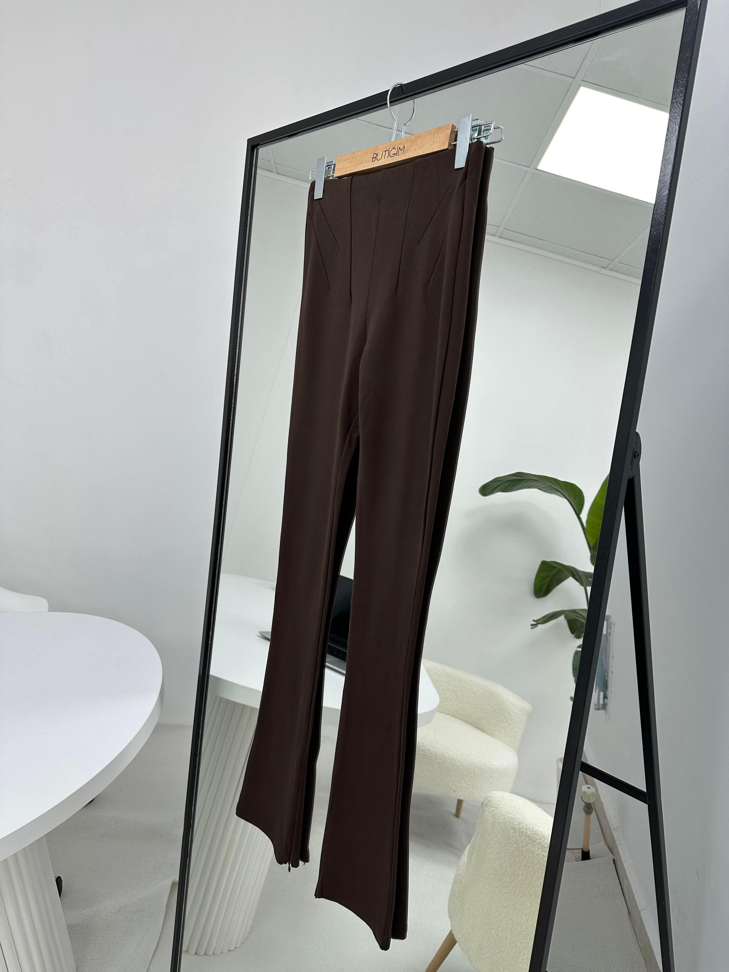 Fermuar Detaylı Kahverengi Tayt