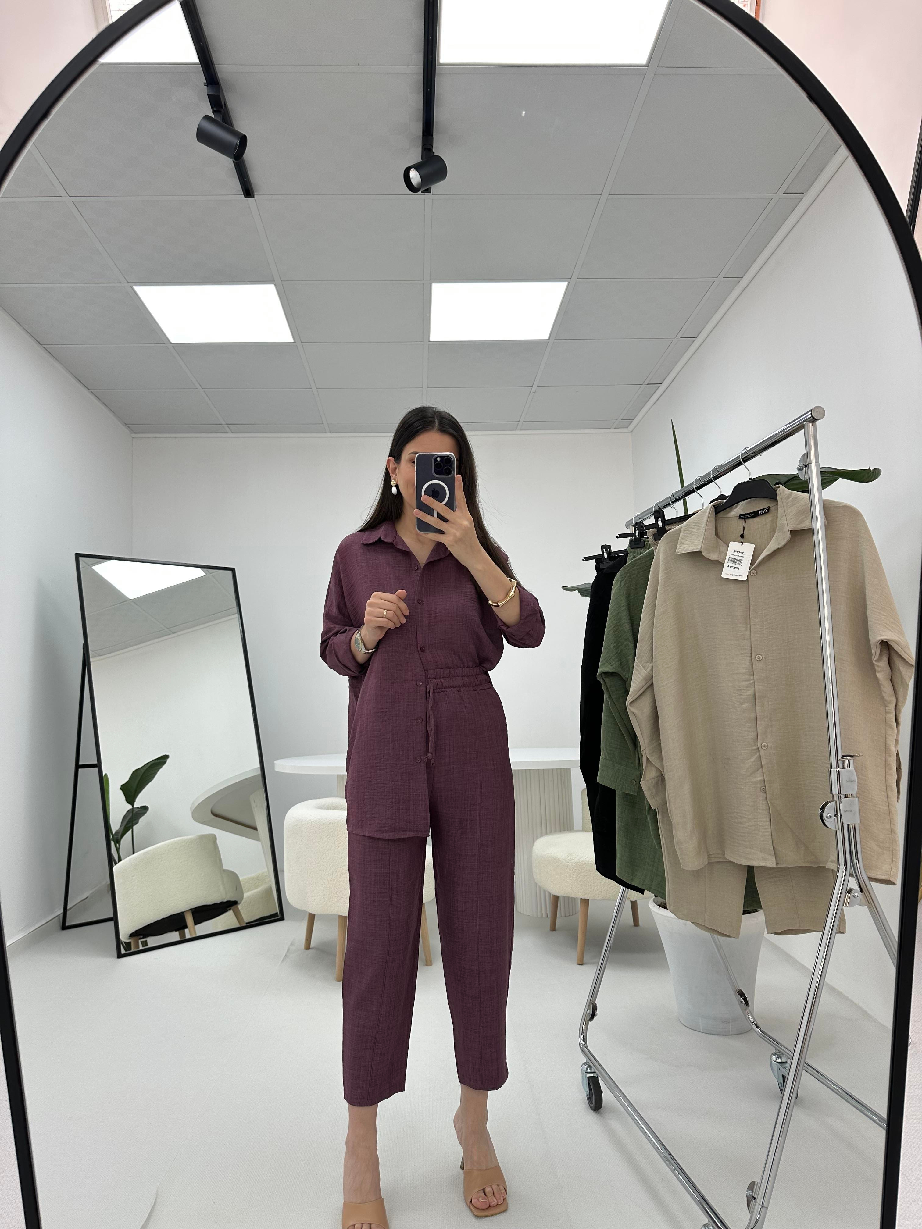Gömlek Pantolon Mürdüm Takım