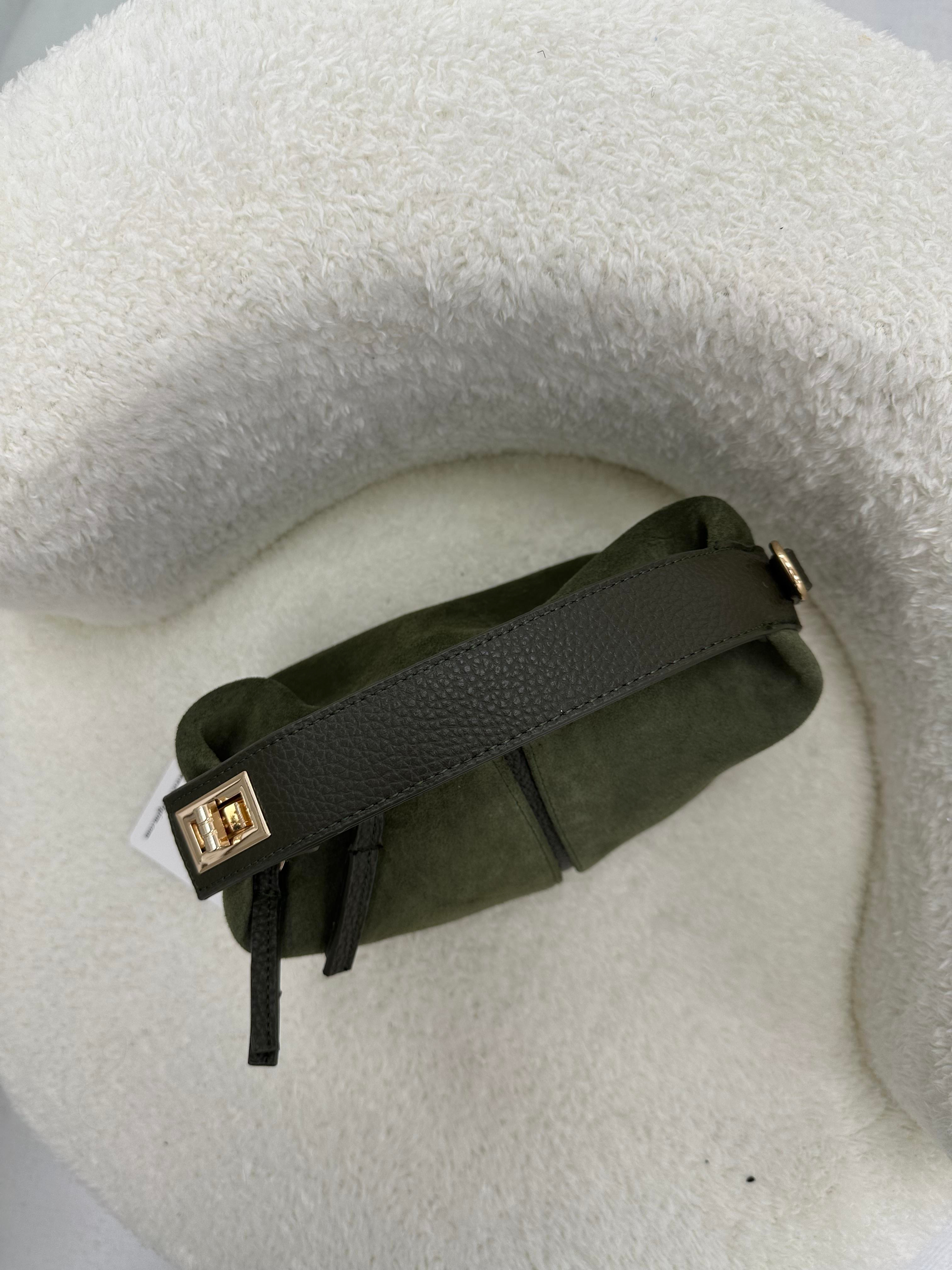 İki Fermuarlı Haki Süet Çanta(0330)