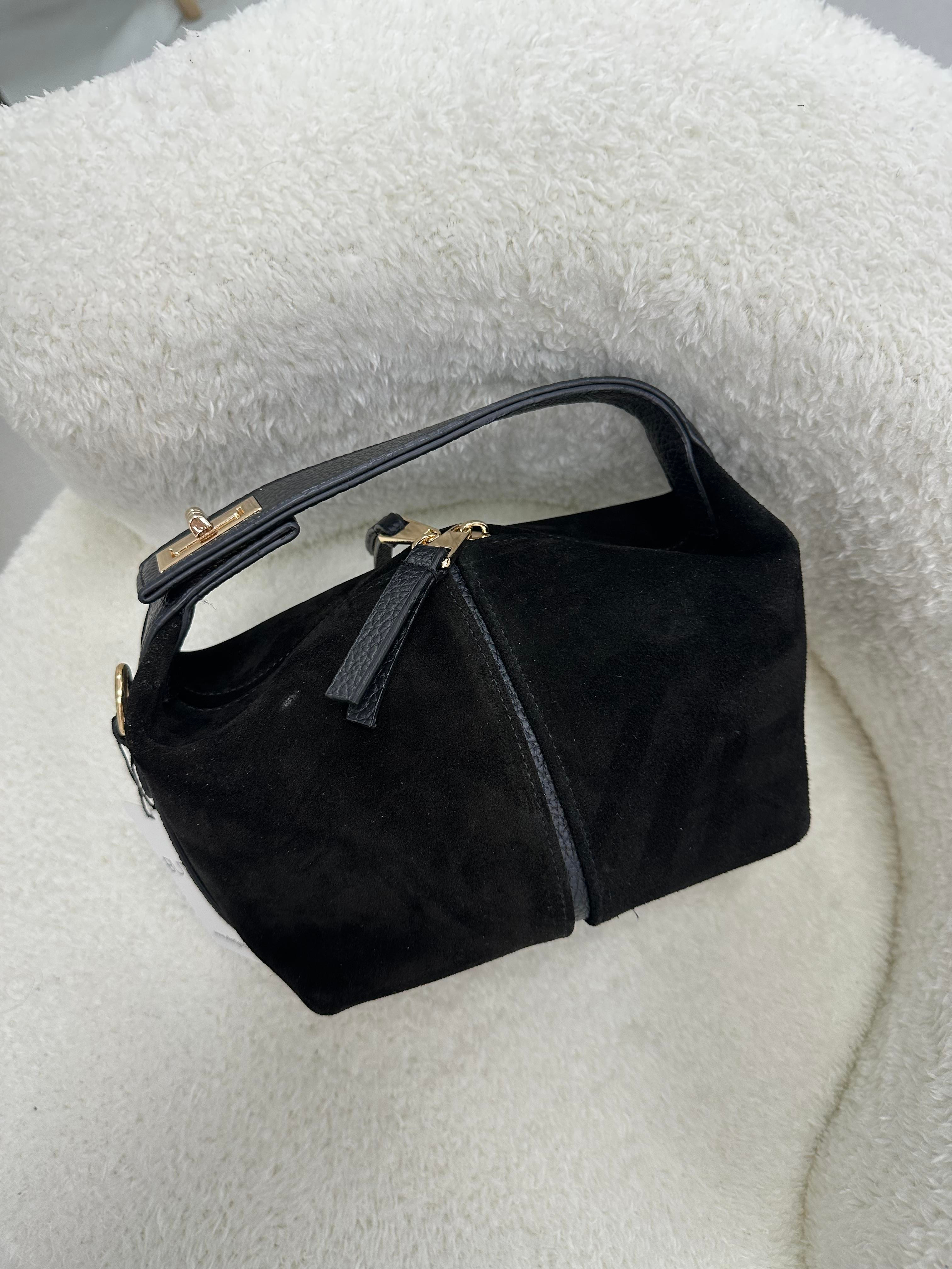 İki Fermuarlı Siyah Süet Çanta(0330)