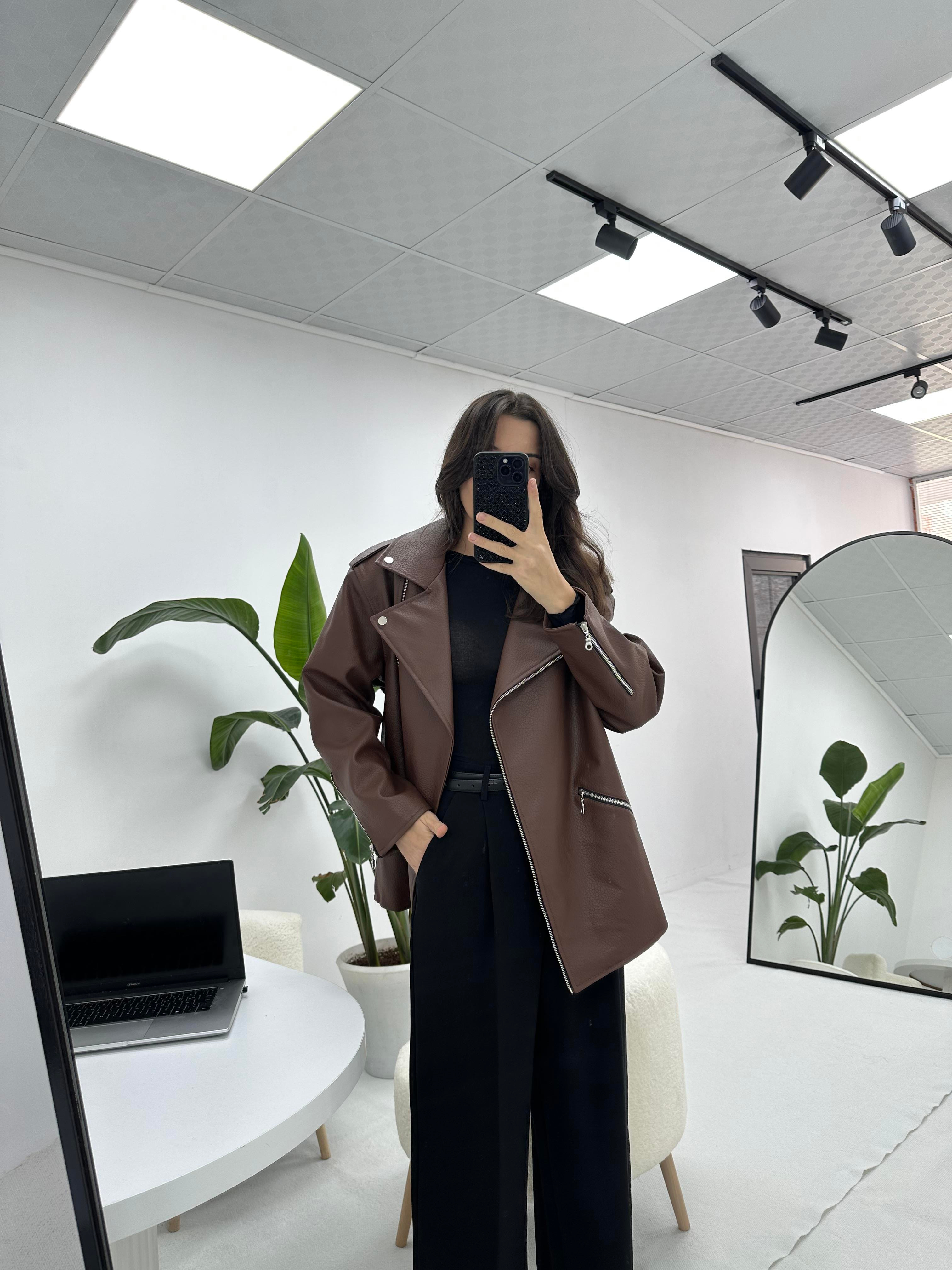 Kahverengi Deri Ceket