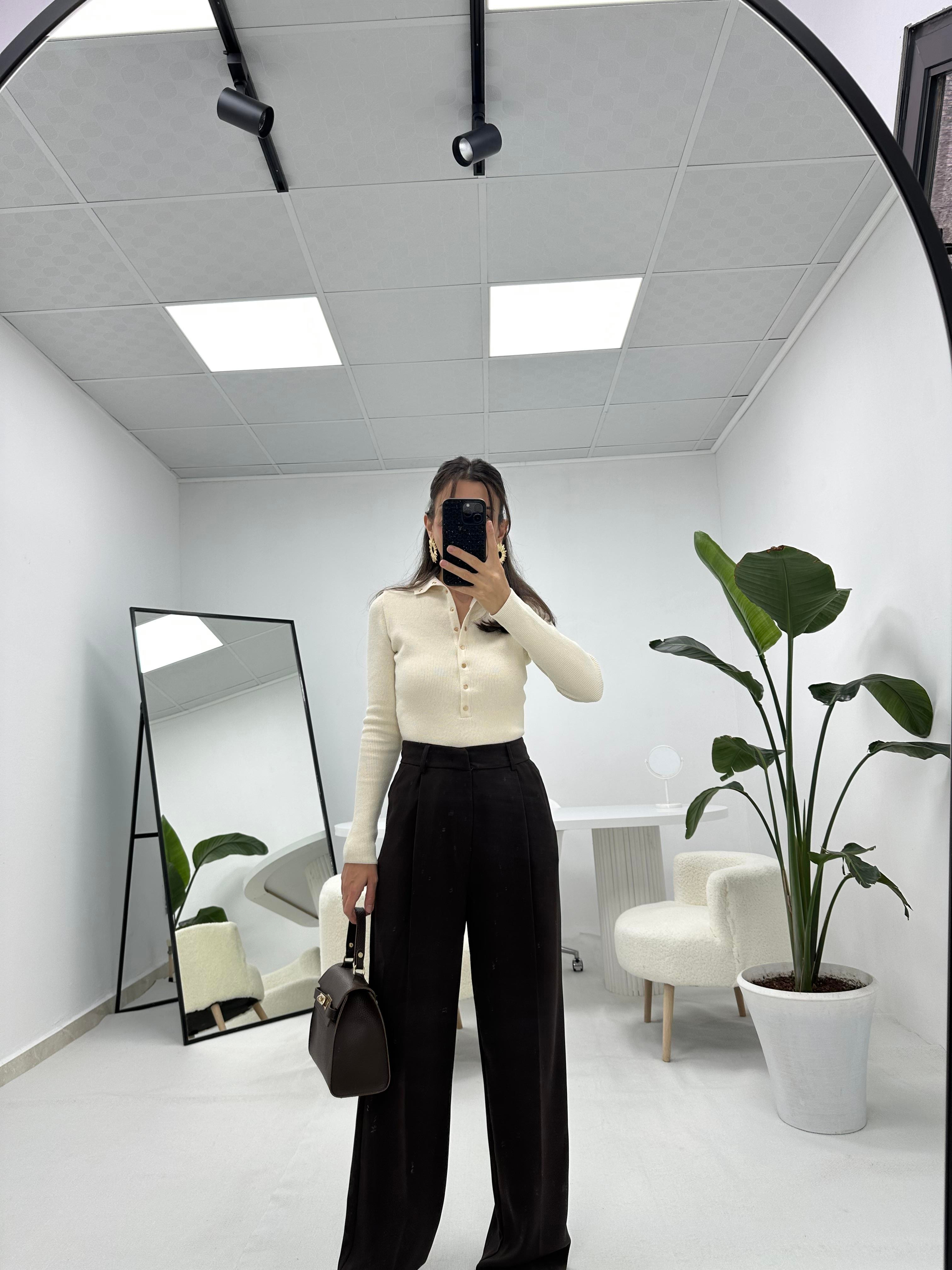 Kahverengi Kumaş Pantolon  Palazzo