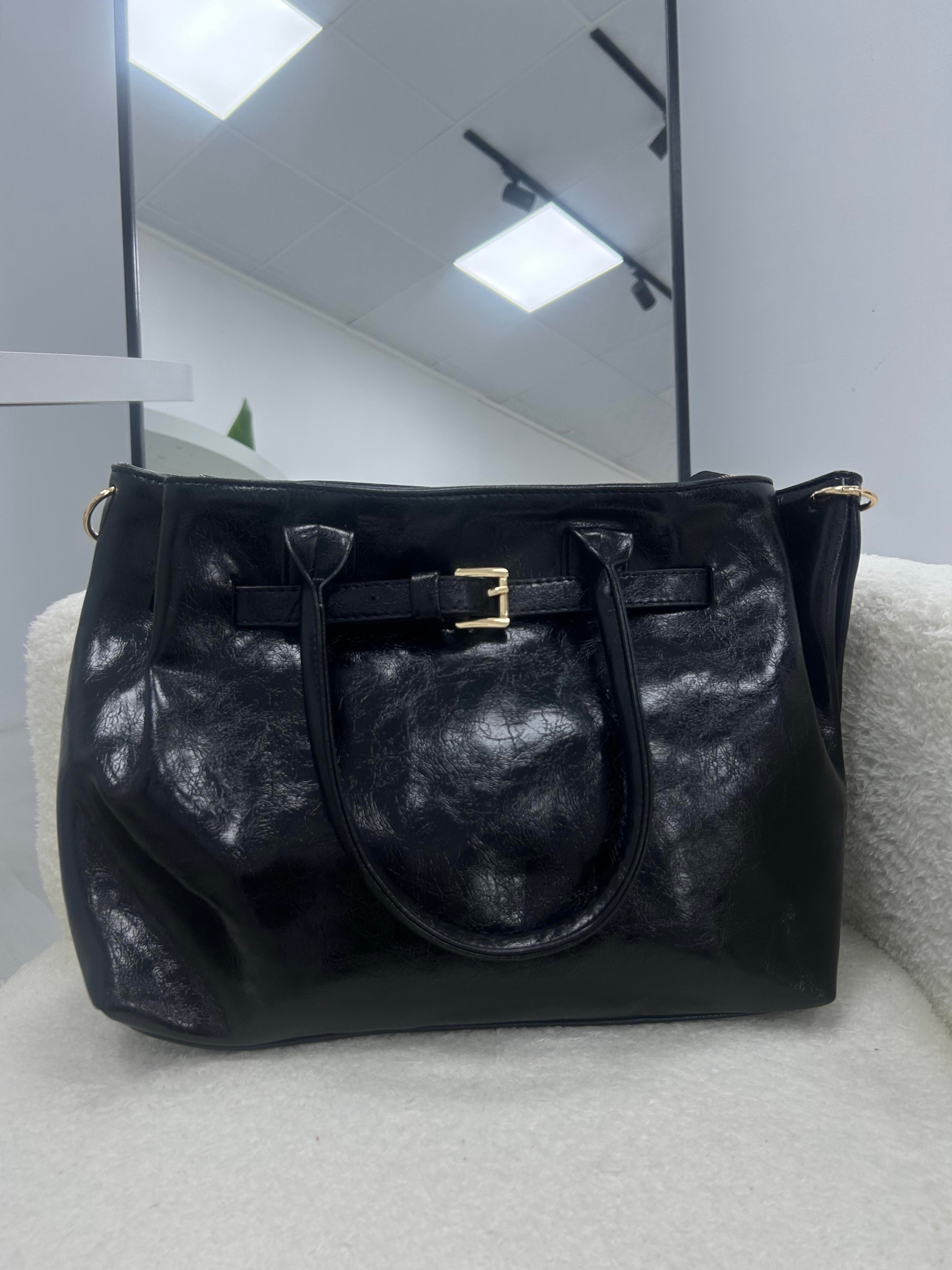 Kemerk Detaylı Deri Siyah Çanta (00065)