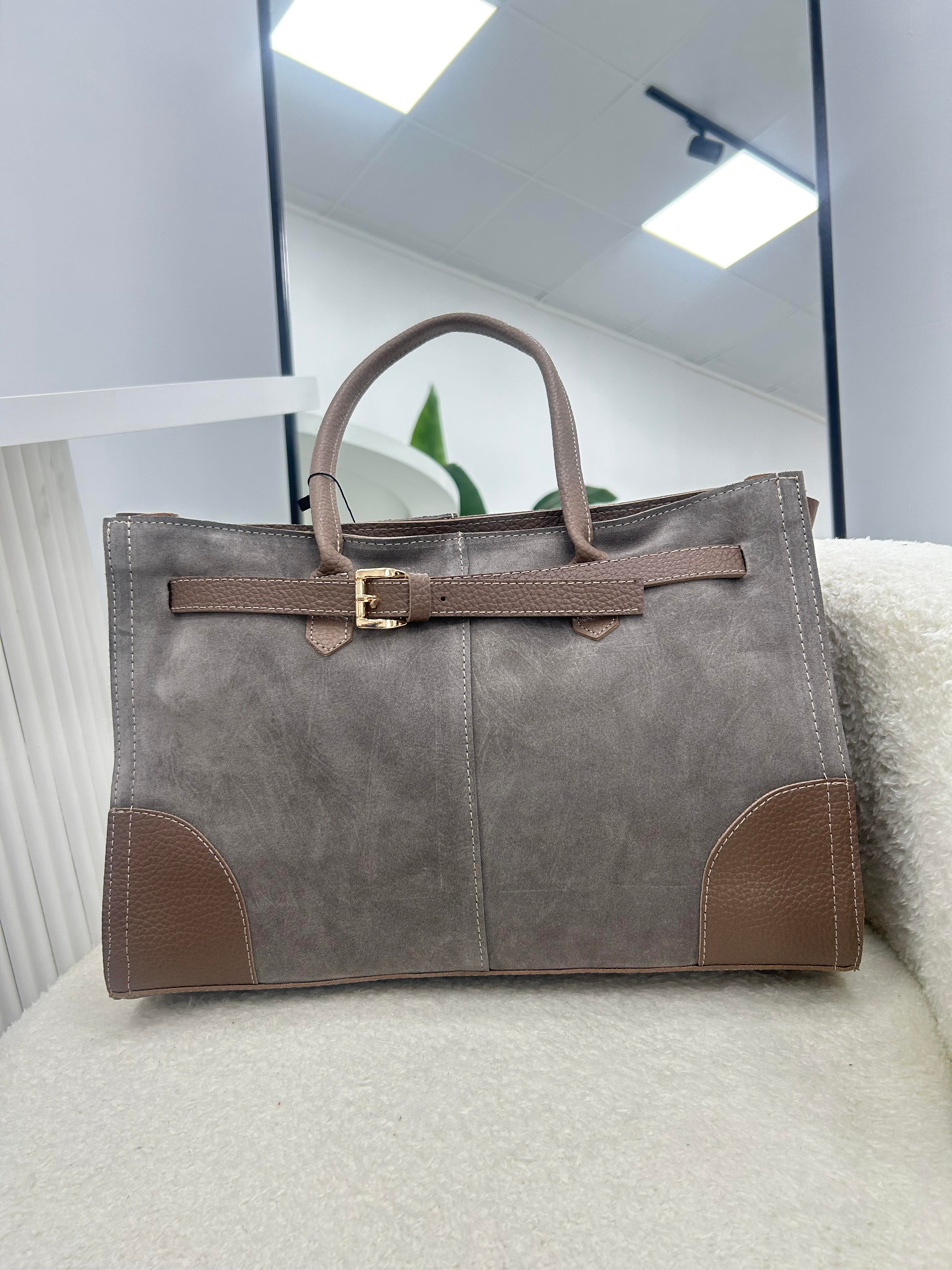Kemerli Detaylı Vizon Süet Çanta (344)