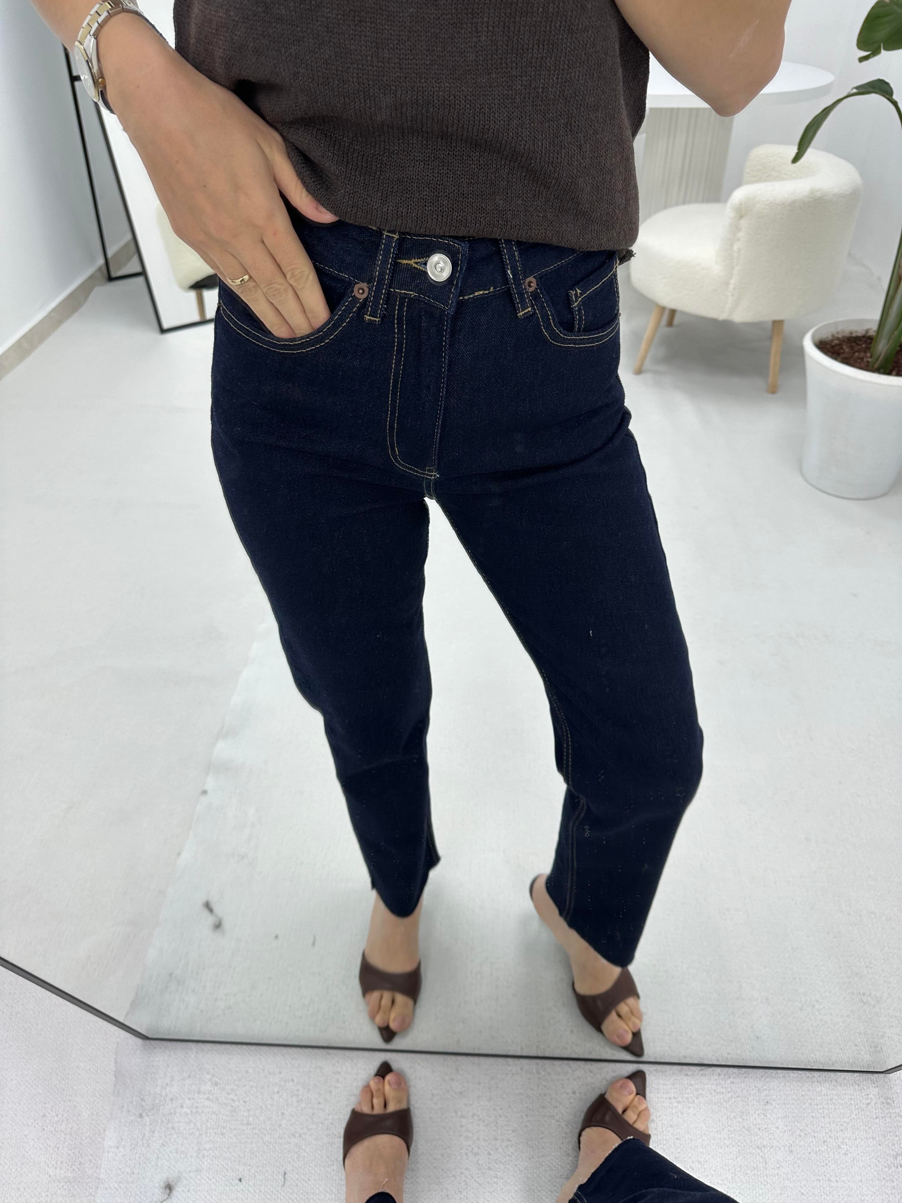 Kesik Paça Açık Lacivert Jean