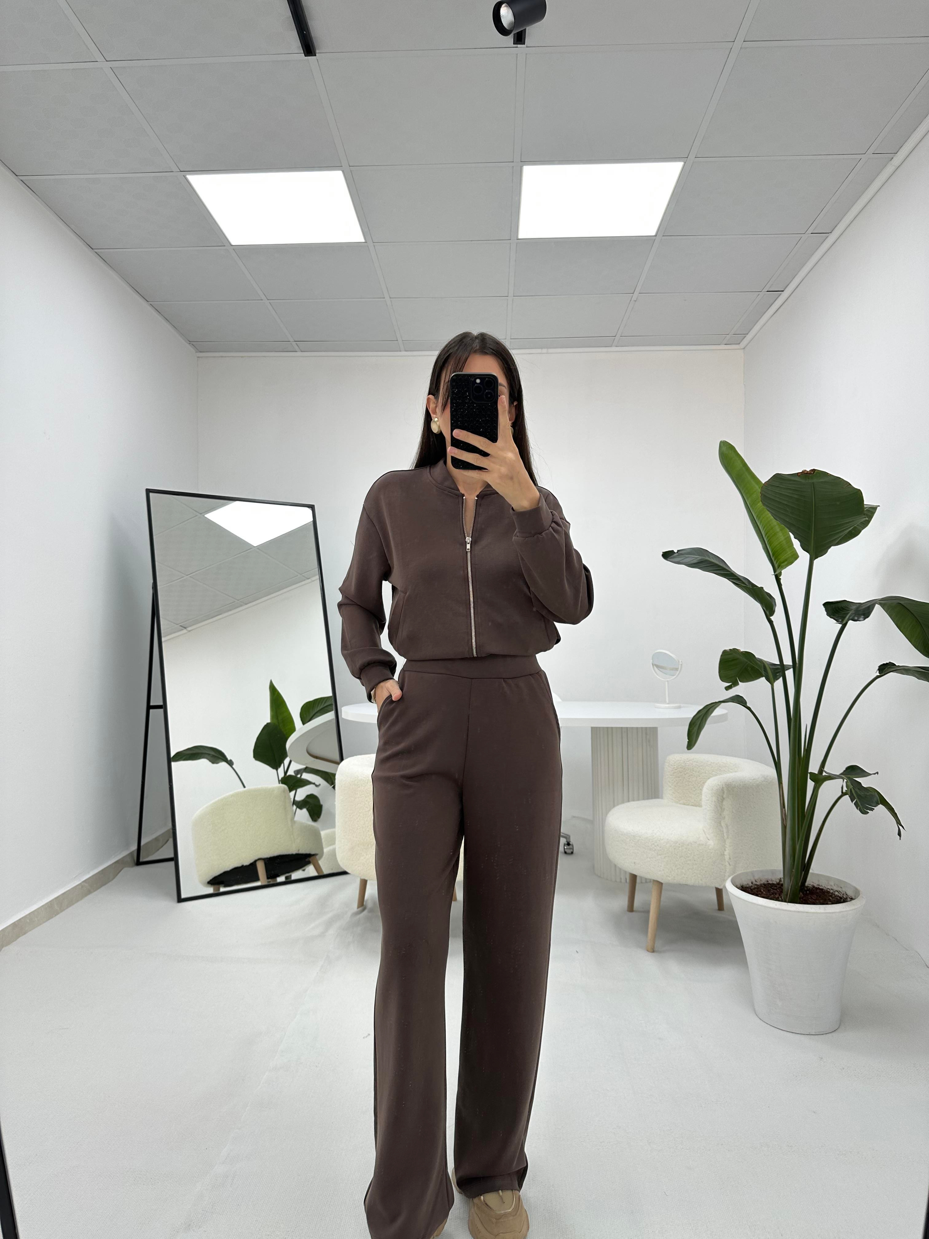 Modal Kumaş Fermuarlı Kahverengi Eşofman Takımı