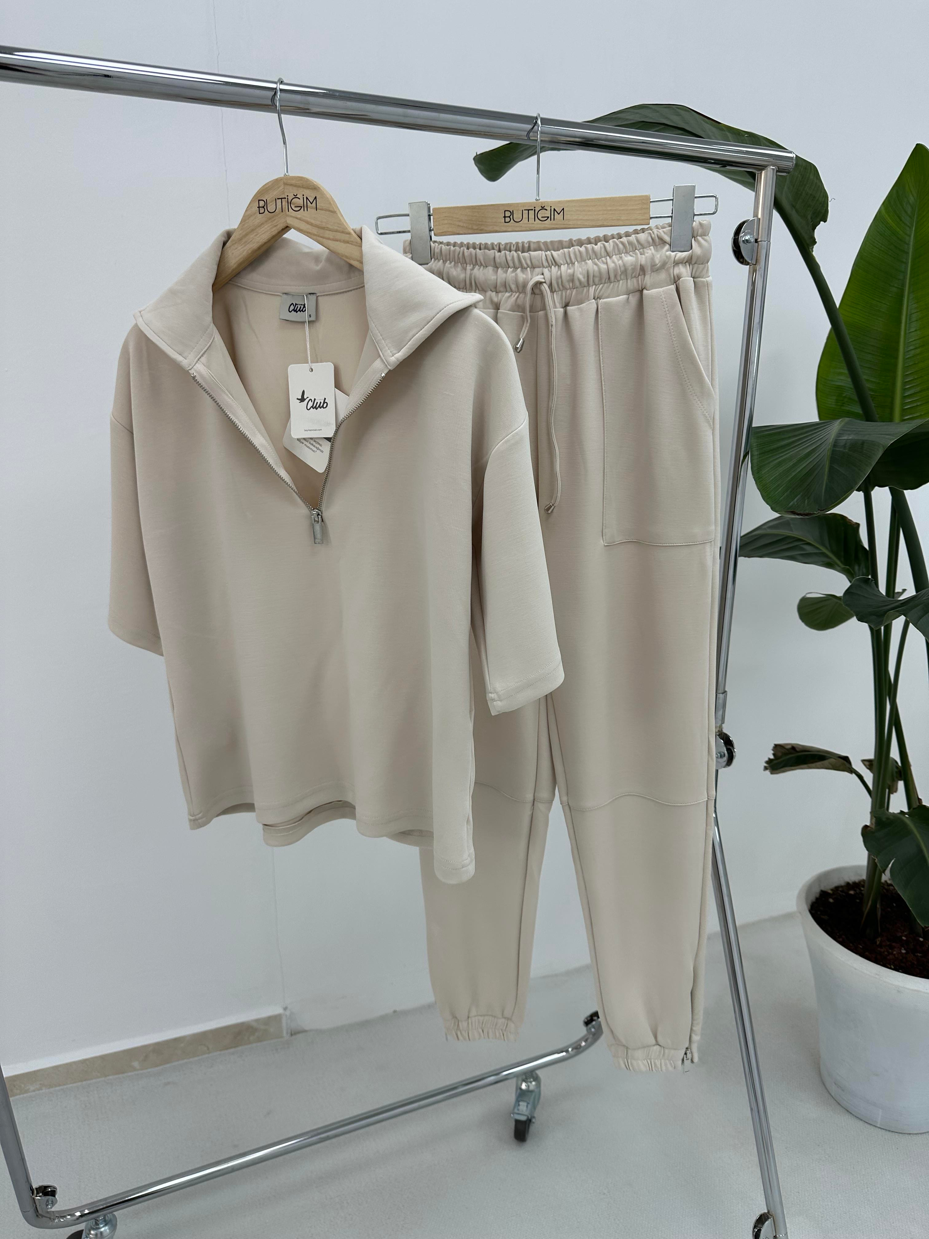 Premium Modal Kumaş Yarım Fermuarlı Taş Takım